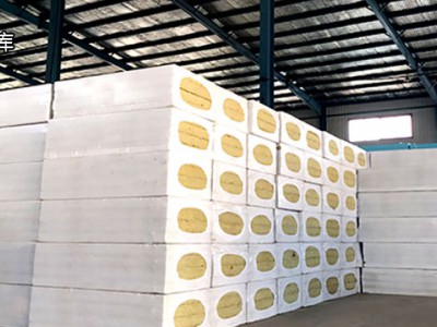 产品切割后经高风吹渣后平行重叠,使其达到包装厚度,经全自动热缩包装机,把岩棉板整体包装,经过热收缩机使包装收缩,冷却后由成品运输车运输至成品库存放。