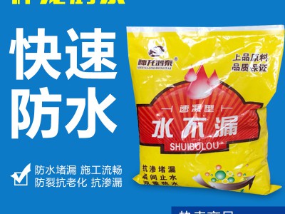 水不漏是一种由特殊水泥添加助剂调剂而成的防水。快捷堵漏、粘结、具有微膨胀的特种防水堵漏材料。具有快速凝固、瞬间止水。强度高、微膨胀、粘结强、高抗渗、与基体结合成整体,无老化之忧。使用简便,用于迎水面或背水面,均可达到堵漏防水的效果。无毒、环保、无环境污染。