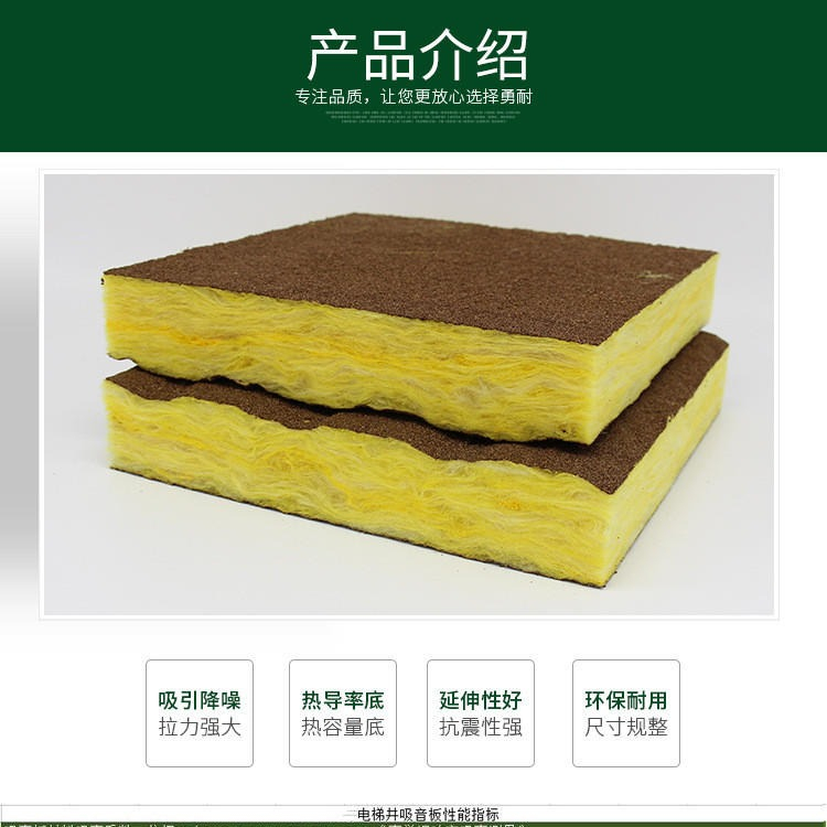 电梯井隔音板内部填充高品质的隔声吸音材料及外表采用轻质吸音材料粘合,具有较高的吸音隔音功能等优点和特性,本产品适用于电梯井走道内外墙的专用吸音、隔音板材,具有防火、隔音、吸音易安装等优点,为您和他人创造安静舒适得空间。