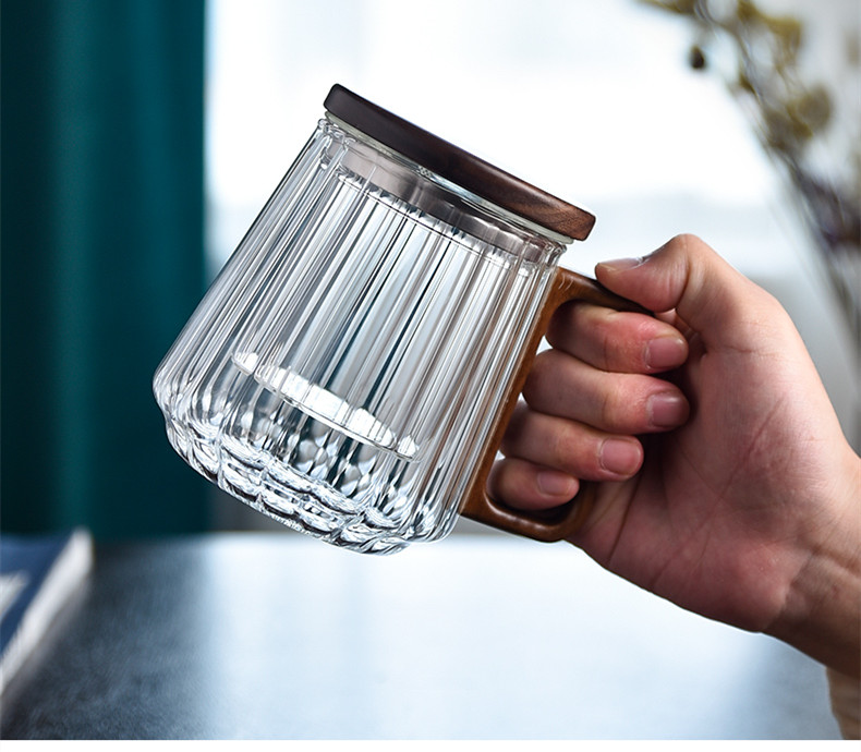 【商品名称】:玻匠人品牌玻璃茶具 条纹木璃办公三件杯 玻匠人十大品牌茶具