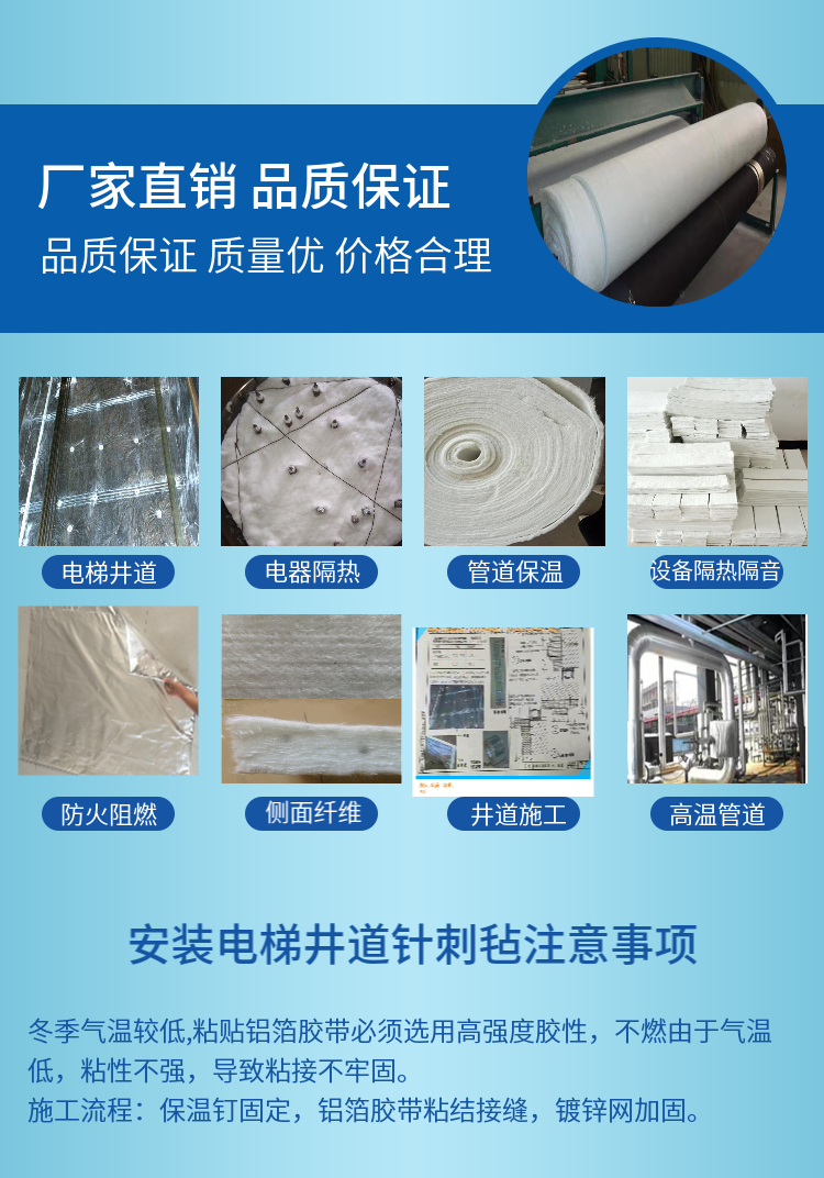 本页信息为廊坊东鼎保温材料有限公司为您提供的“东鼎 电梯井专用玻璃纤维针刺毡 井道吸音降噪”产品信息,如您想了解更多关于“东鼎 电梯井专用玻璃纤维针刺毡 井道吸音降噪”价格、型号、厂家,请联系厂家,或给厂家留言。